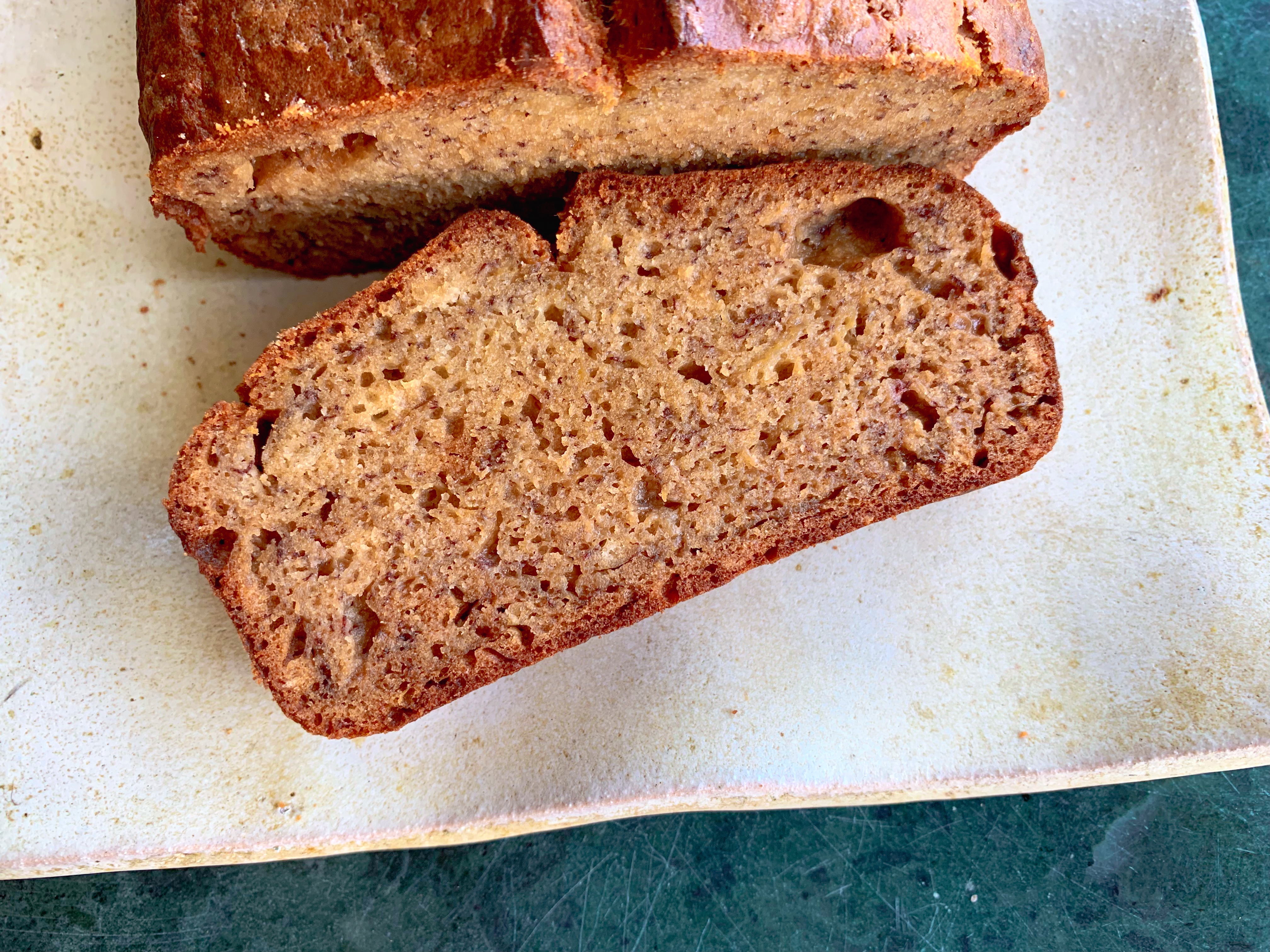 Doobydobap’s recipe and was really happy of the outcome! Her recipe builds on a classic base: ripe bananas, melted butter, sugar and the usual dry ingredients. She kept it simple – no chocolate or spices or nuts mixed into the batter – but elevated it with two secret ingredients: greek yoghurt and coffee liquor. There was slightly less sugar than the other recipes as well – 1/2 cup white sugar instead of 3/4 cups.