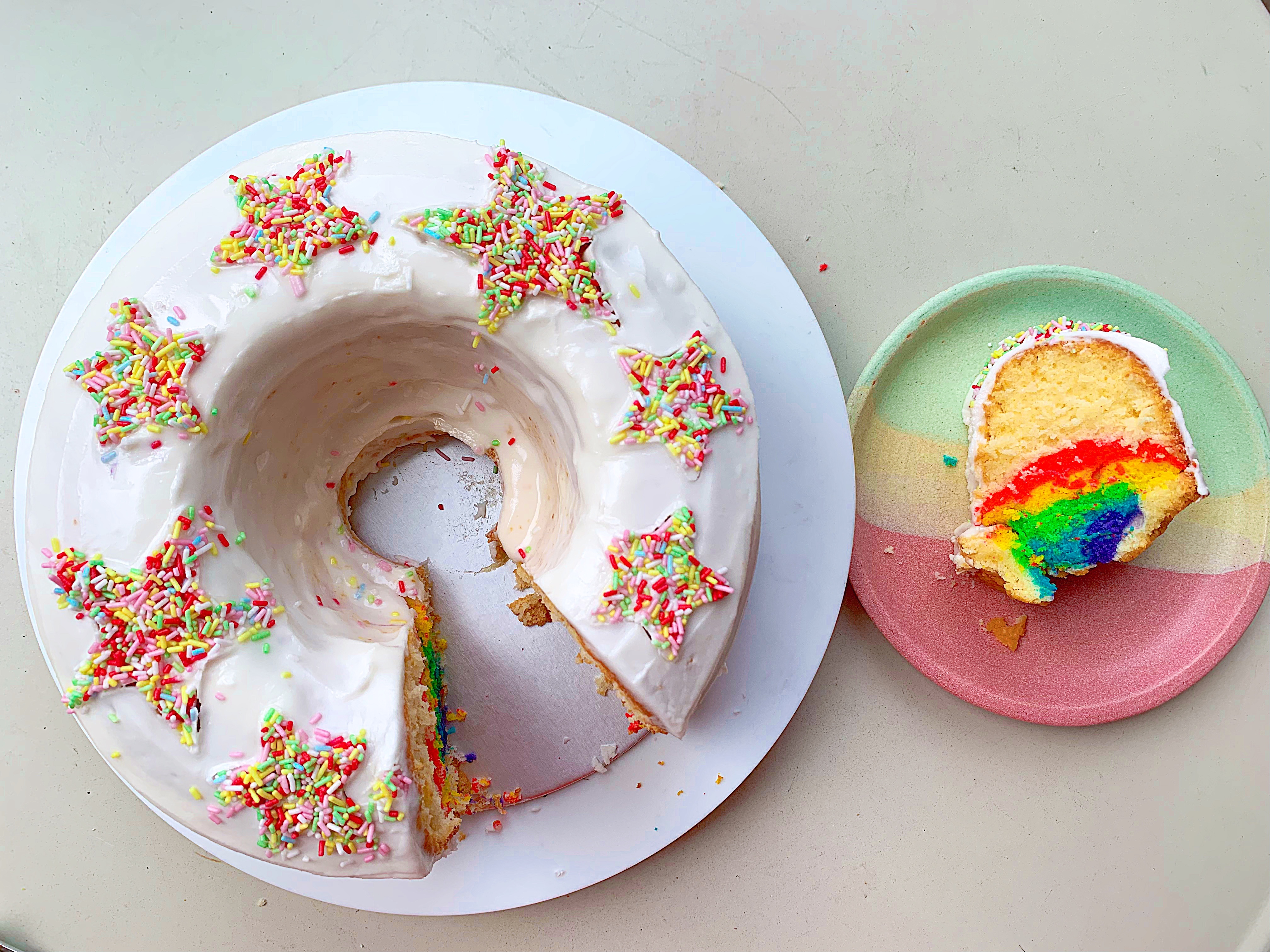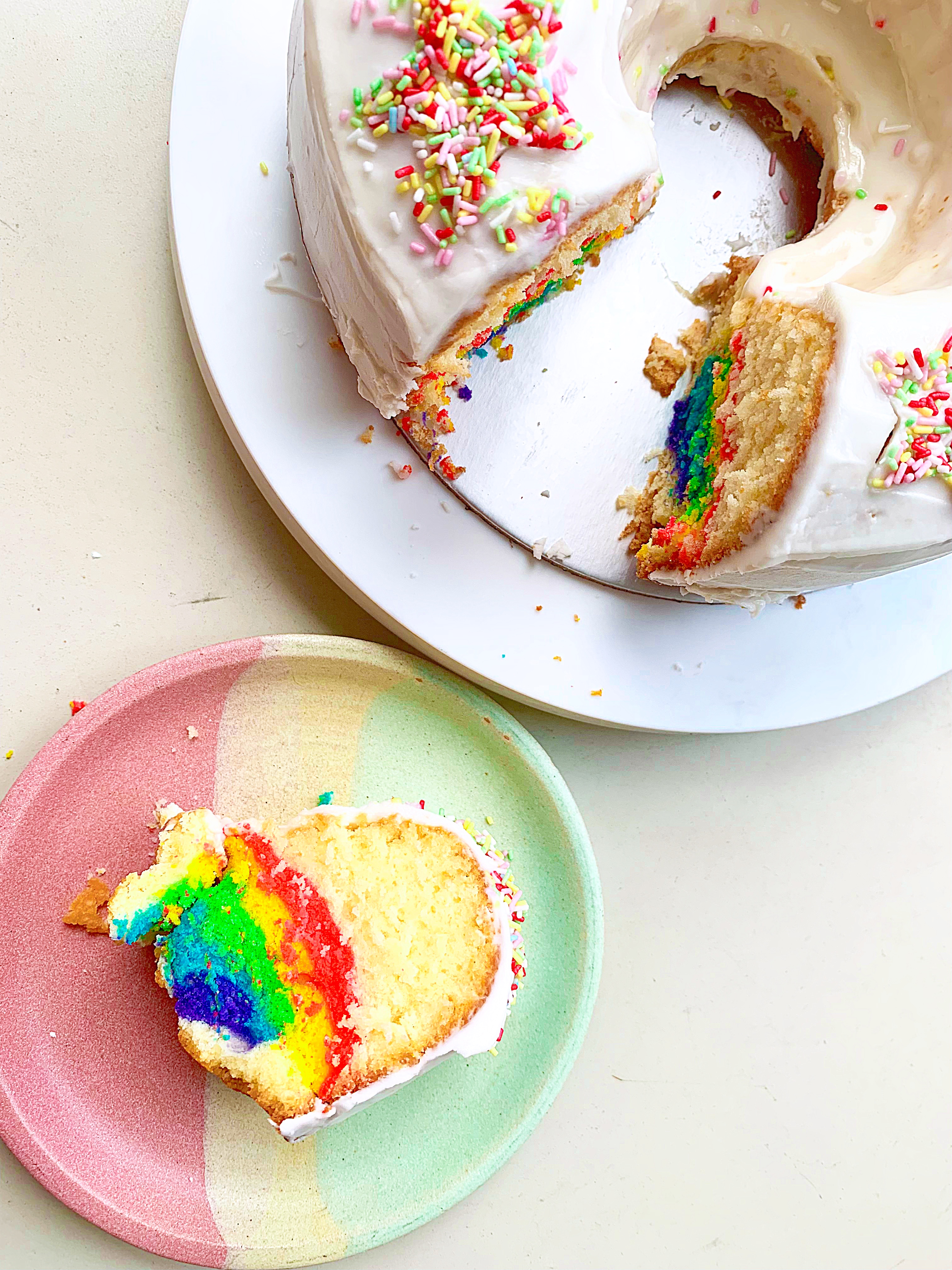 Rainbow Surprise Cake For Vanilla Bundt Cake For Vanilla Icing Glaze: |