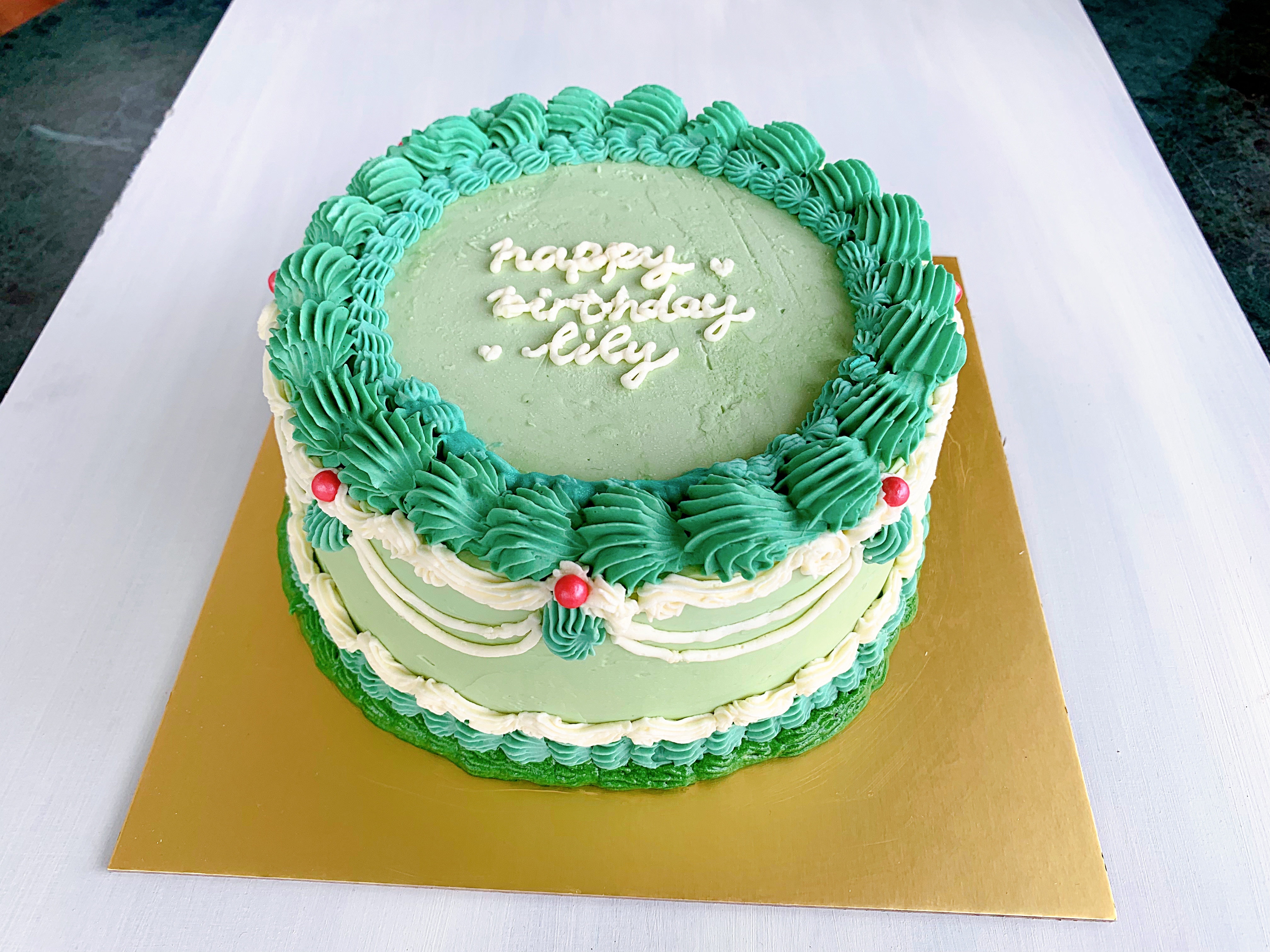 To make White Chocolate Fleuilletine Heat the oven to 350Β°F. Line a sheet pan with parchment paper.Β Coat the fleuilletine: Place the fleuilletine in a large bowl. Put the corn syrup in a small heatproof bowl and microwave for 30 seconds, then pour the warm corn syrup over the puffed rice. Sprinkle with the sugar, then mix with a spatula until the rice is evenly coated.Β Bake for 10 to 15 minutes, until golden-brown and caramelized. Melt the chocolate over a double boiler. Pour the melted chocolate over the puffed rice and fold with a spatula until coated. Line an 7-inch (18-centimeter) cake pan with parchment paper. Press the coated fleuilletine into the prepared cake pan. Refrigerate until firm, about 20 minutes. To make White Chocolate Mocha Cake Heat milk and chocolate until melted and combined. Add espresso powder and stir until dissolved. Cool to room temperature. Preheat oven to 350F (180C). Grease and flour 2 x 7-inch cake rounds and line with parchment. In a medium bowl, whisk flour, baking powder, and salt until well combined. Set aside. Using a stand mixer fitted with a paddle attachment, cream butter and sugar on med-high until pale and fluffy (approx 3 mins). Reduce speed and add eggs one at a time fully incorporating after each addition. Add vanilla. Alternate adding flour mixture and milk mixture, beginning and ending with flour (4 additions of flour and 3 of milk). Fully incorporating after each addition. Bake for about 40mins or until a toothpick inserted into the center comes out mostly clean. Place cakes on wire rack to cool for 10mins then turn out onto wire rack and cool completely. To make White Chocolate Ganache Heat heavy cream until almost to the simmer. Place on white chocolate and leave on until melted. Stir until smooth and combined. Set aside to cool completely and thicken. Whip ganache until light and fluffy. Espresso Swiss Meringue Buttercream In a large saucepan, place mixing bowl over a pot of barely simmering water. Add egg whites and cups sugar and whisk together until frothy. Whisk constantly until mixture reaches 160ΛF (takes about 3 min). Sugar should be fully dissolved (no granules when rubbing mixture between finger tips). Mixture will feel hot to the touch (or like the temperature of warm milk). Once bowl is at room temperature, switch to paddle attachment, and whip together until soft peaks form. Add butter 1 Tbsp at a time. Once all butter is in, scrape down the bowl and continue beating until it reaches a thick whipped consistency. It may look lumpy β itβs a good sign, keep beating until it changes consistency to become smooth, thick and whipped. Add vanilla extract, espresso powder and mix on med-high until incorporated and silky. To assemble Place one layer of cake on a cake stand or serving plate. Top with half of the whipped ganache, spread evenly. Repeat with remaining layers and crumb coat the cake with any remaining ganache. Chill for 20mins until ganache is set. Crumb coat by frosting and smoothing the sides with the espresso buttercream. Chill for 30 mins until frosting is cold and firm. Place on an additional thicker layer in green. To decorate, here are some inspiration from videos: Mintea Cakes #1, Mintea Cakes #2, and Mintea Cakes #3! Enjoy! |
